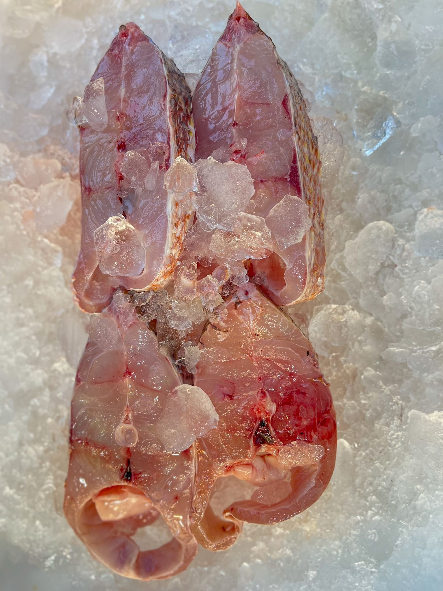 Red Snapper Steak Cuts are premium, thick slices of Red Snapper (Lutjanus campechanus), a popular fish known for its mild, sweet flavor, firm texture, and vibrant red skin. When prepared in steak cuts, the fish’s flesh is cut into thick fillets, often from the center of the fish, which makes it ideal for grilling, pan-frying, or baking.